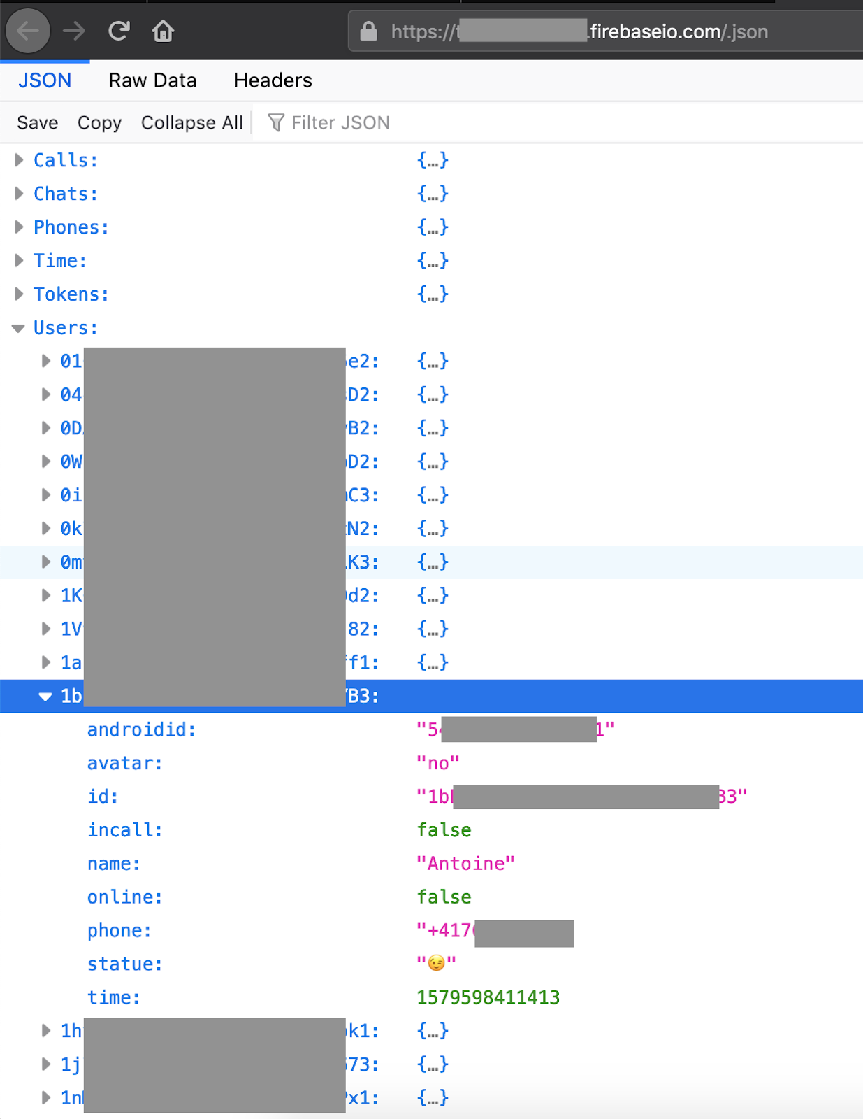 Thanks to Elliot Alderson's blog post on hacking the Donald Daters App, I learned how to access the insecure Firebase backend associated to the app, which of course contained all user, chat, group and call records, as defined in the